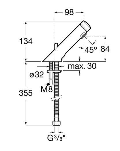 Montaż jednootworowy. Przepływ: 3 l/min. Czas otwarcia: 7 +/- 2 s.