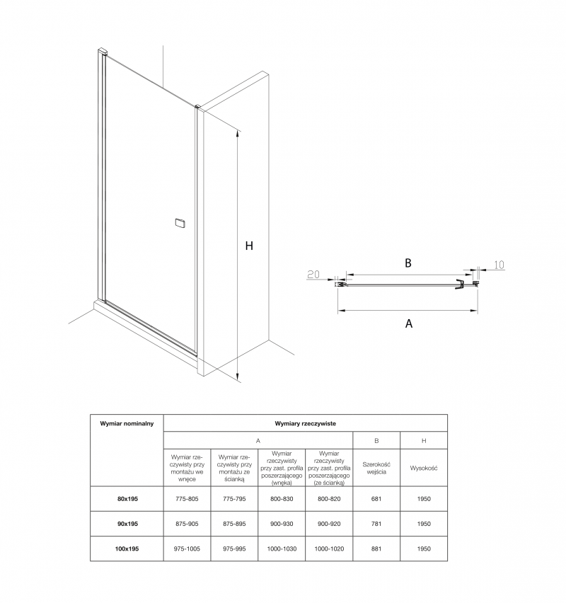 Do montażu we wnęce potrzebny dodatkowy profil ścienny AM48195060. Przy zastosowaniu profilu AM48195060 drzwi otwierane są tylko na zewnątrz.