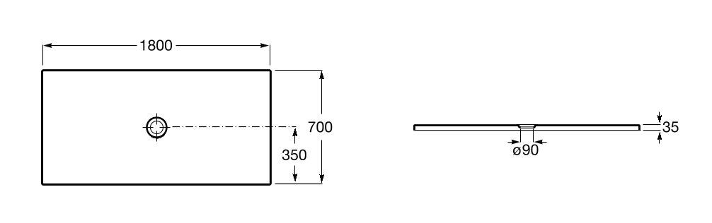 Brodzik zawiera w komplecie syfon Ø 90 z osłoną, wys. 80 mm, przepływ 12l/min z osłoną wykonaną z Senceramic® w kolorze brodzika.