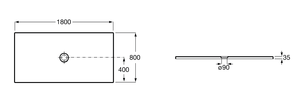 Brodzik zawiera w komplecie syfon Ø 90 z osłoną, wys. 80 mm, przepływ 12l/min z osłoną wykonaną z Senceramic® w kolorze brodzika.