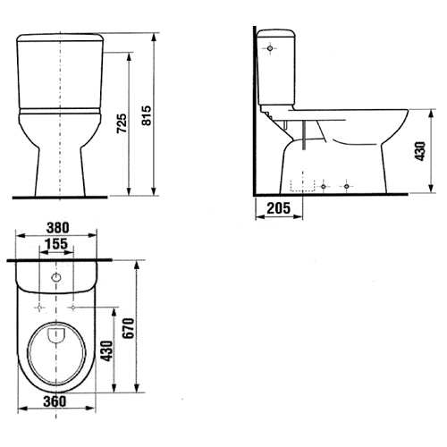 Urządzenie kompaktowe składające się z miski wc o odpowiednio dobranej wysokości (43 cm) zgodnej ze standardową wysokością wózka.