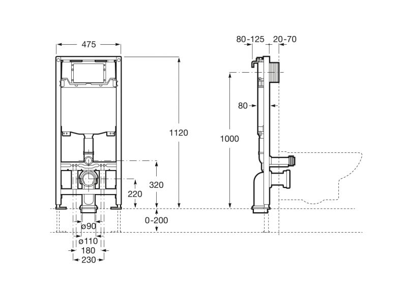 Stelaż podtynkowy do misek wc podwieszanych, do zabudowy lekkiej.