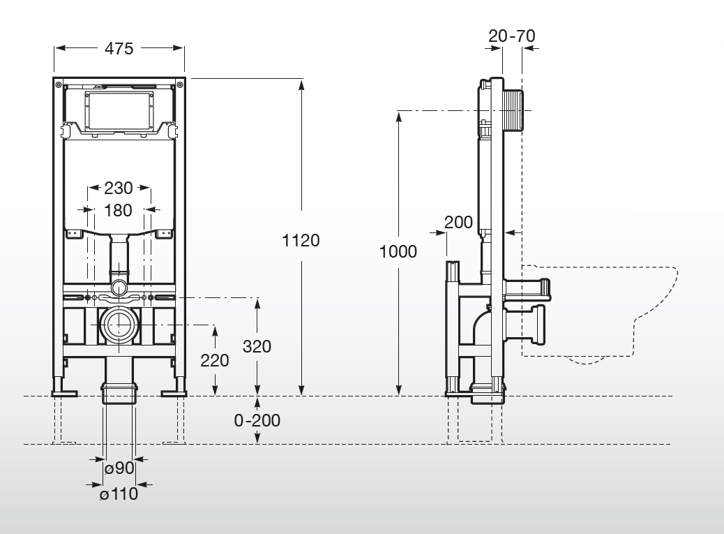 DUPLO ONE - Stelaż podtynkowy wolnostojący do misek WC podwieszanych