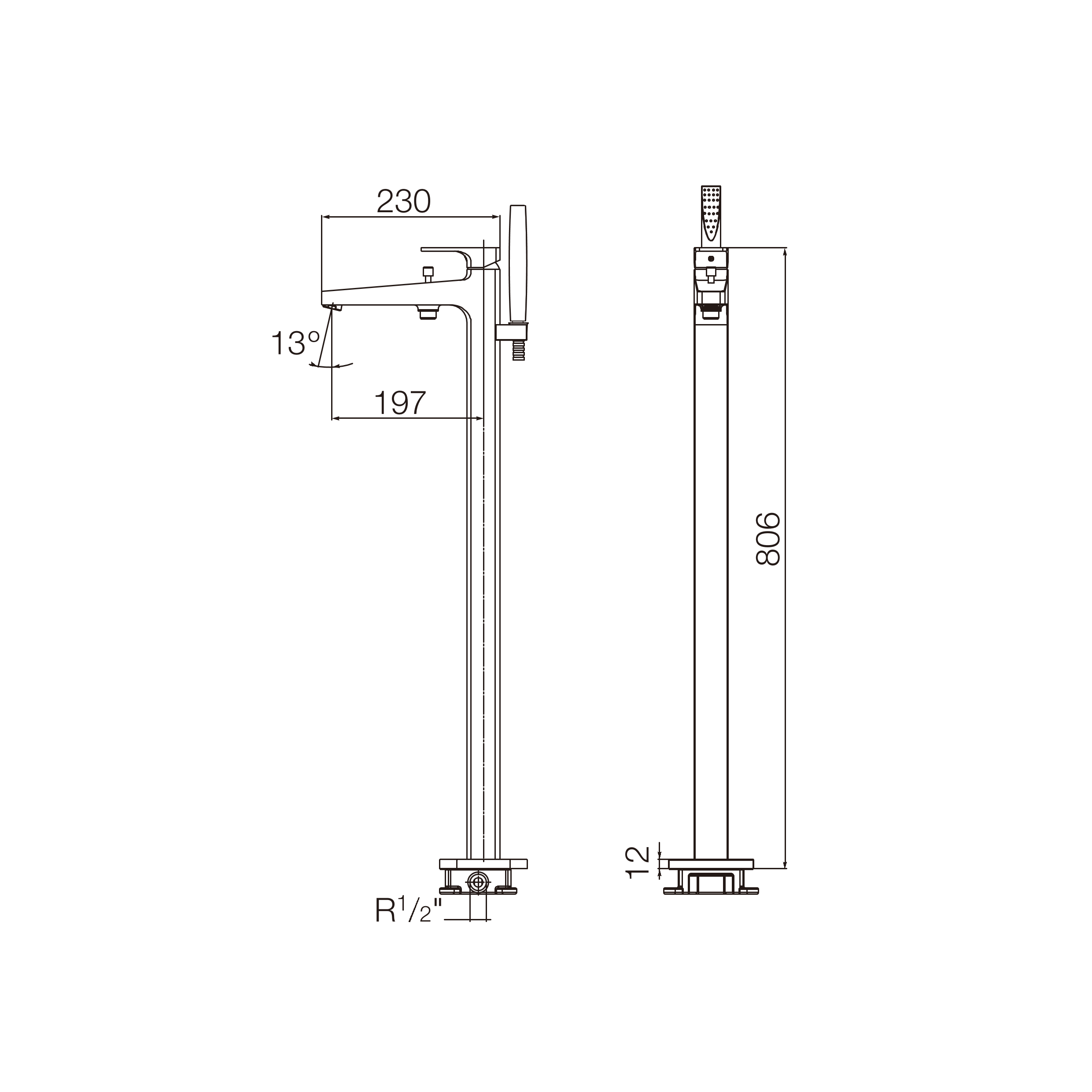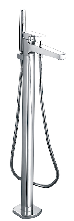 Montaż podłogowy, głowica ceramiczna, perlator, przełącznik wanna-natrysk, słuchawka natryskowa o długości 150 cm