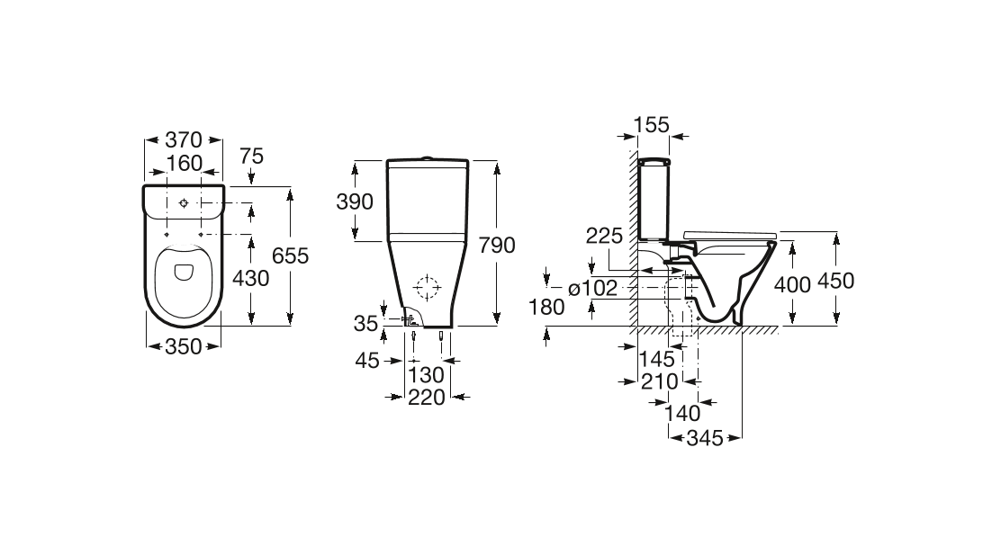 Miska WC bezkołnierzowa, z odpływem podwójnym (umożliwia montaż poziomy lub pionowy odpływu). Zawiera zestaw montażowy do podłogi. Zbiornik montowany na misce wc bez konieczności mocowania do ściany.