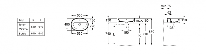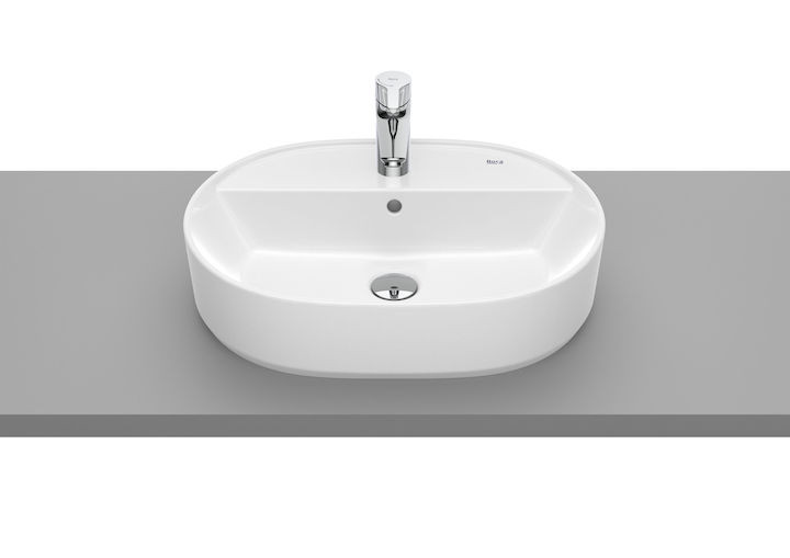 ROUND - Umywalka nablatowa owalna, z przelewem, z otworem