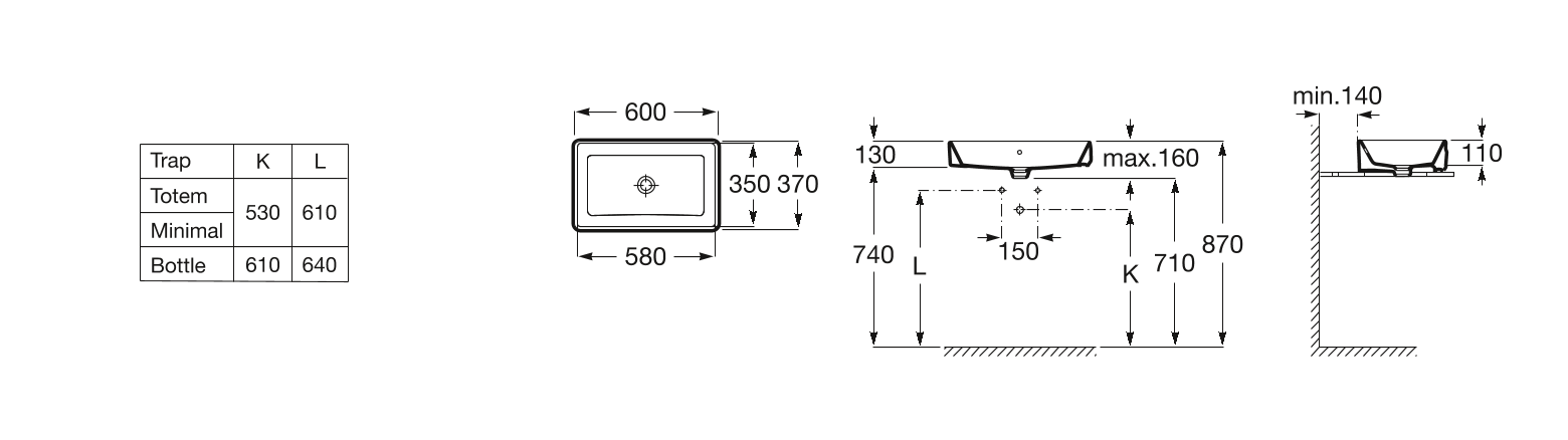 ROUND - Umywalka nablatowa prostokątna, z przelewem
