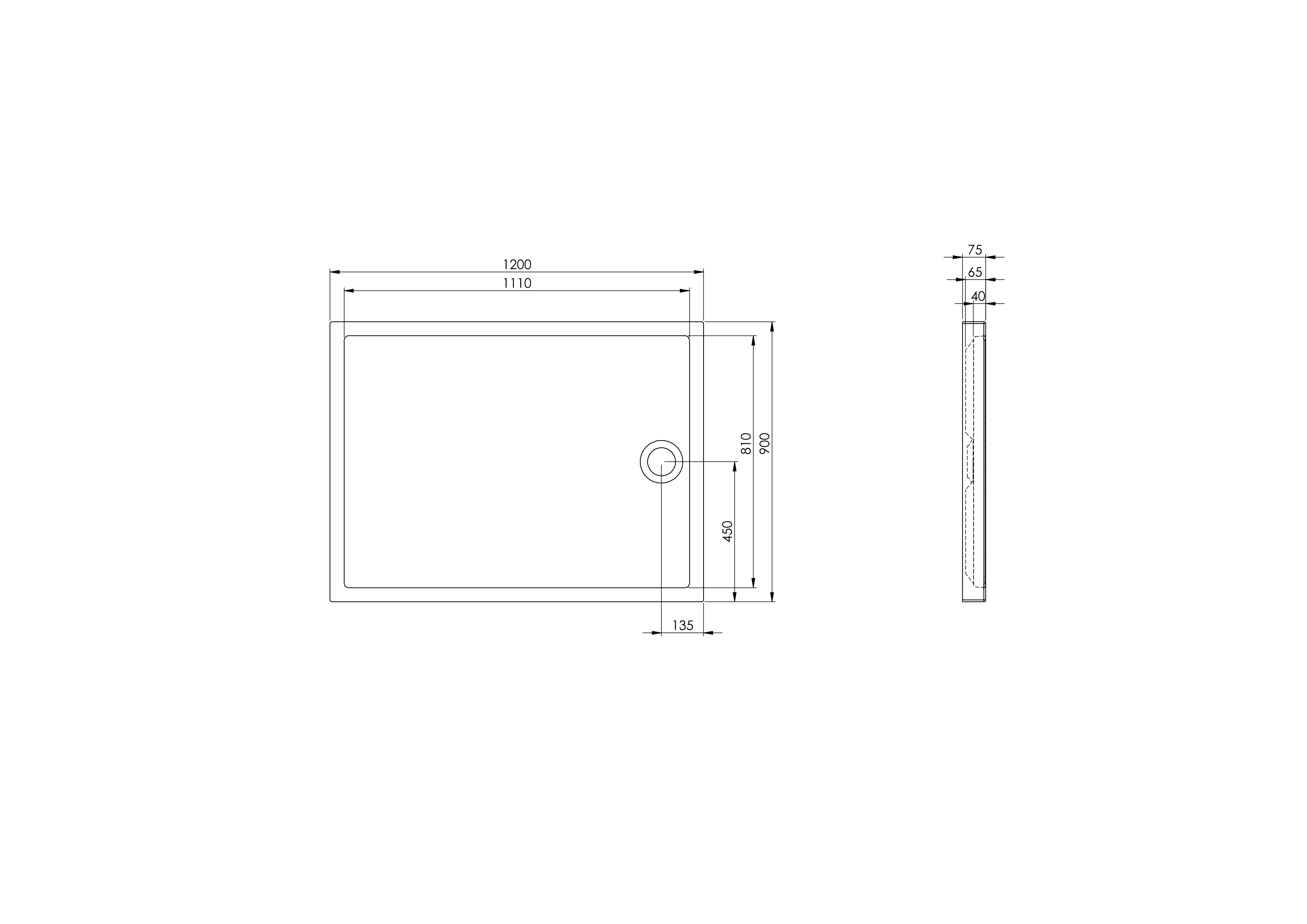 Brodzik wykonany z akrylu o grubości 3,2 mm ze zintegrowaną obudową, wysokość 7,5 cm, bez syfonu i bez nóżek. Do montażu bezpośrednio na posadce bez stosowania nóżek.