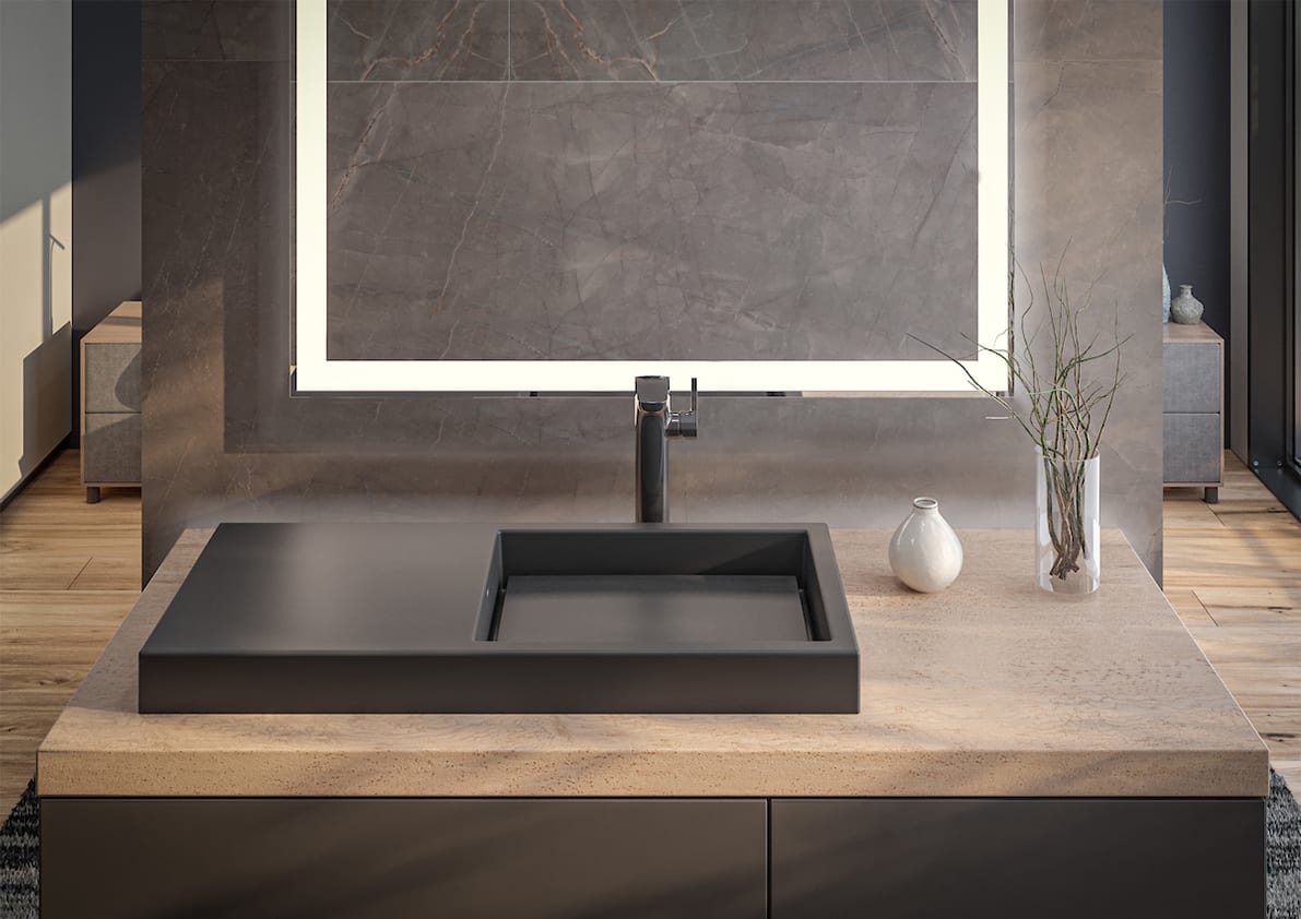 Horizon to seria umywalek inspirowanych architekturą środowiska miejskiego która wyraża jego pogląd na miasta, geometrię oraz grę cieni i świateł. Niewidoczne otwory odpływowe nadają umywalkom wyjątkowego charakteru