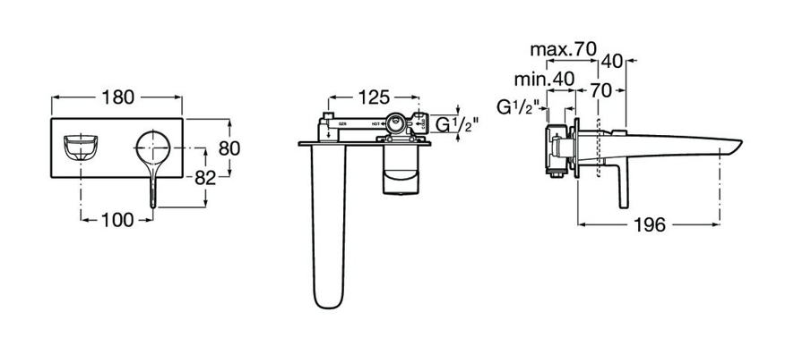 Baterie z kolekcji Insignia w kolorze różowego złota, wyróżniają się delikatnymi kształtami i stylowym uchwytem bocznym. Krany umywalkowe dostępne są w dwóch rozmiarach: 170 i 260 mm. Wyposażone zostały ponadto w system uruchamiania Cold Start, co oznacza, że uchwyt baterii ustawiony jest domyślnie na wodzie zimnej, dzięki czemu zapobiega marnowaniu energii.