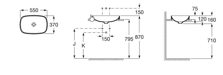 Sposób instalacji: umywalka częściowo wpuszczana w blat (wysokość ponad blat - 75 mm).