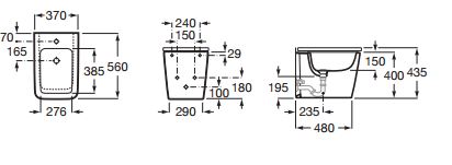Z otworem na baterię na środku, z otworem przelewowym, ukryty system montażu. Długość bidetu : 56 cm. Sposób instalacji : montaż przyścienny do posadzki ( zestaw mocujący w komplecie ).
