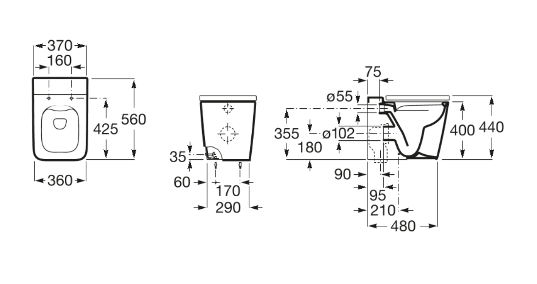 Miska WC bezkołnierzowa, z odpływem podwójnym (umożliwia montaż poziomy lub pionowy odpływu).