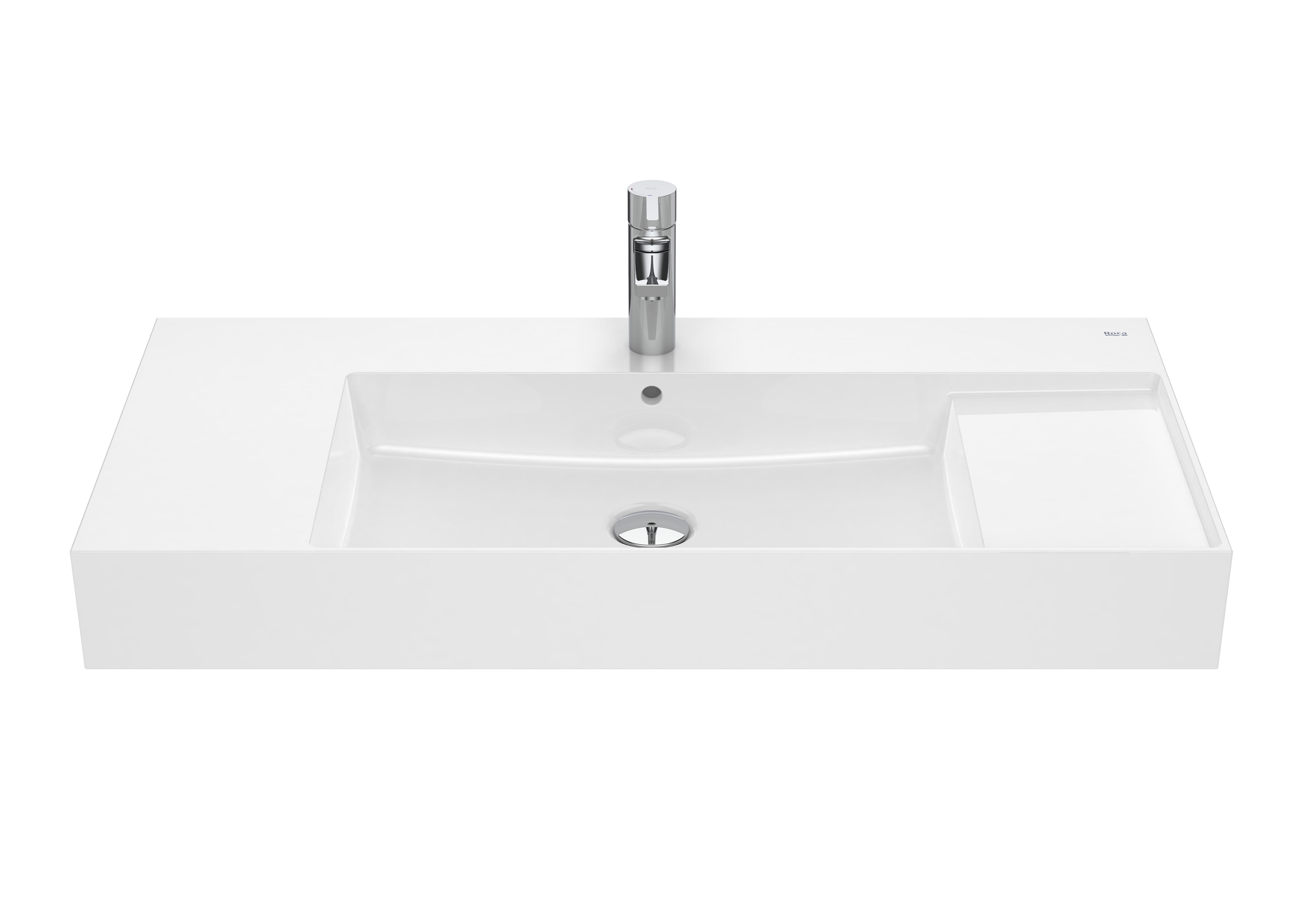 Umywalka z otworem na baterię, z otworem przelewowym, zawiera zestaw mocujący do ściany. Artykuł pakowany w kartonowe pudło. Sposób instalacji: montaż do ściany