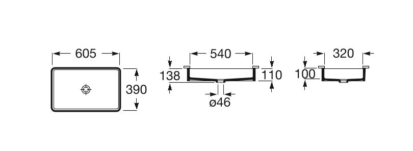 Umywalka bez otworu na baterię, bez otworu przelewowego, zawiera otwarty korek odpływowy z ceramiczną osłoną i zestaw montażowy. Artykuł pakowany w kartonowe pudło.