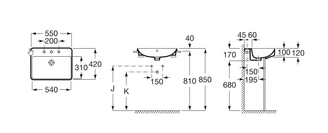 Umywalka z otworem na baterię, z przelewem, zawiera zestaw montażowy. Artykuł pakowany w kartonowe pudło.