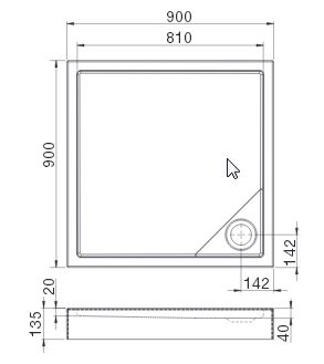 Brodzik kompaktowy ze zintegrowaną obudową READY TO INSTALL 13,5 cm.