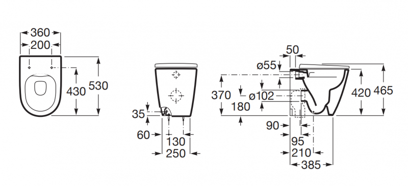 ROCA Ona muszla WC stojąca przyścienna Rimless