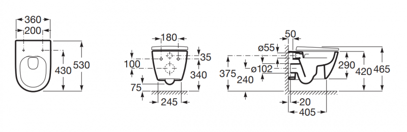 ROCA Ona muszla WC wisząca Rimless Vortex z deską wolnoopadającą