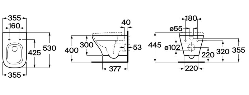 ROCA Optica muszla WC wisząca Rimless Vortex z deską wollnopadająca