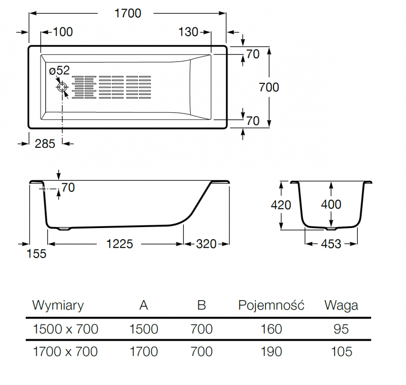 Roca Tampa - Design, trwałość i wytrzymałość to podstawowe cechy tej wanny. Antypoślizgowe dno zwiększa bezpieczeństwa kąpieli.