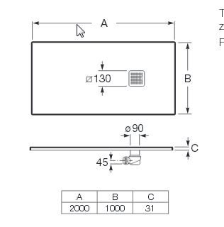 Brodzik prostokątny 2000 x 1000 mm.