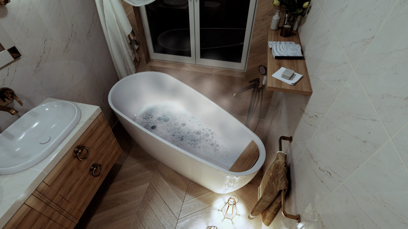 Wewnętrzna półka daje szeroki wachlarz zastosowań. A dodatkowa opcja w postaci możliwości zamówienia blatu z wodoodpornej dębiny sprawi, że wanna zyska nowy charakter.