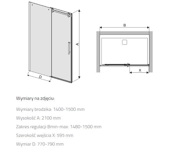 Możliwe jest dostosowanie szerokości kabiny prysznicowej do indywidualnej potrzeby klienta poprzez skrócenie bieżni o wymiar “L”.