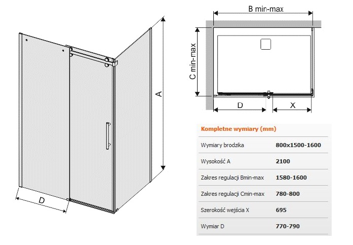 Możliwe jest dostosowanie szerokości kabiny prysznicowej do indywidualnej potrzeby klienta poprzez skrócenie bieżni o wymiar “L”.