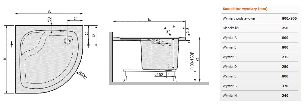 Brodzik półokrągły z siedziskiem BPzs-a/EKOPLUS o głębokości 25 cm, wykonany jest z akrylu sanitarnego i kompletowany ze stelażem.