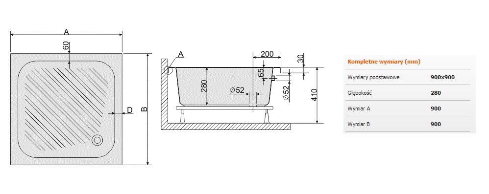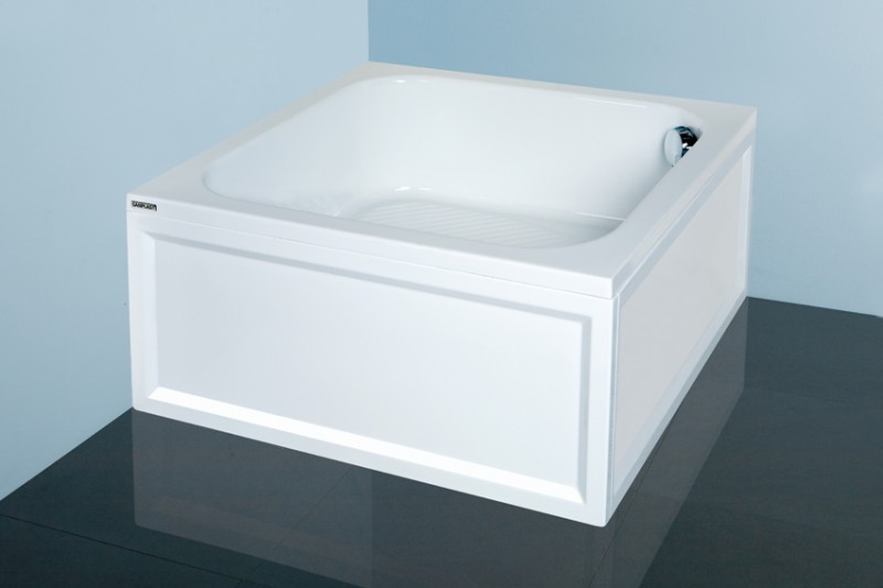 Brodzik kwadratowy bez siedziska Bbs/CL o głębokości 28 cm, wykonany jest z akrylu sanitarnego i kompletowany ze stelażem.