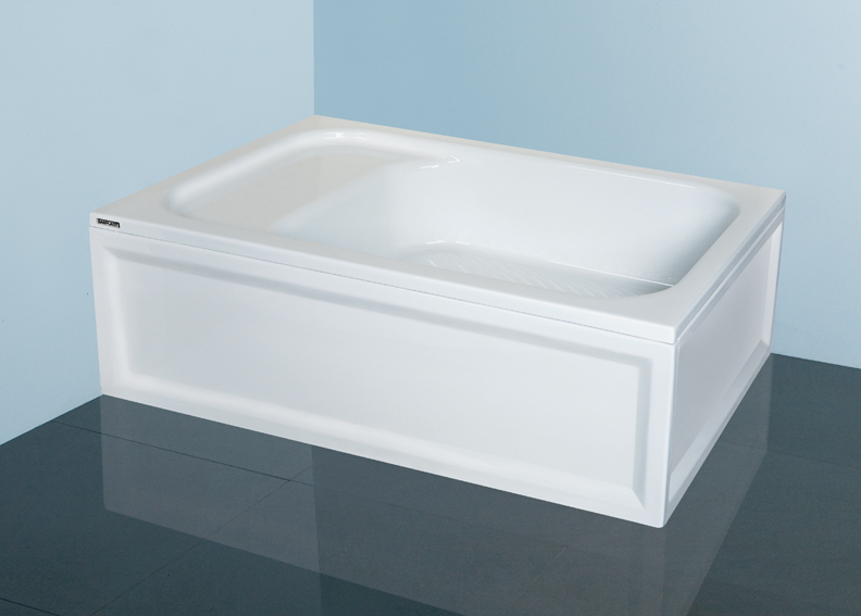 Brodzik prostokątny z siedziskiem Bzs/CL o głębokości 28 cm, wykonany jest z akrylu sanitarnego i kompletowany ze stelażem.