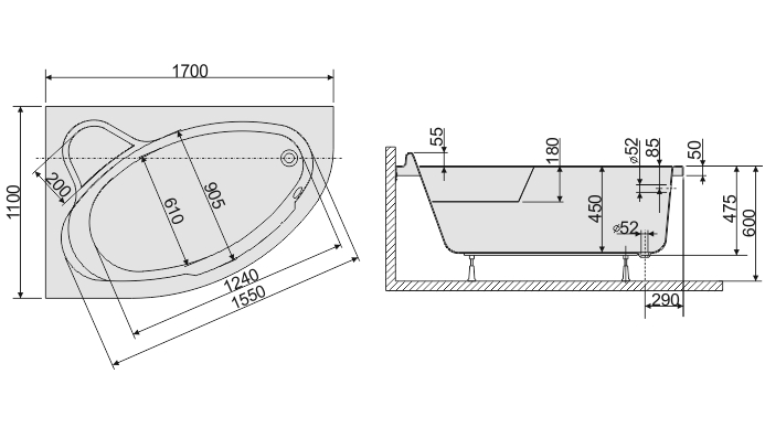 Sanplast Wanna WAL/CO 110x170+STW biew