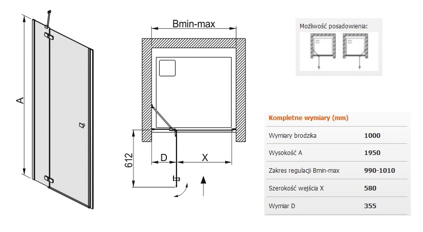Produkt jest uniwersalny – możliwość montażu w wersji lewej lub prawej.