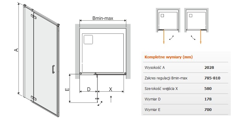Nowe rozwiązanie do zabudowy wnęki prysznicowej do drzwi skrzydłowe DJ2/FREE II o wysokości 200cm.