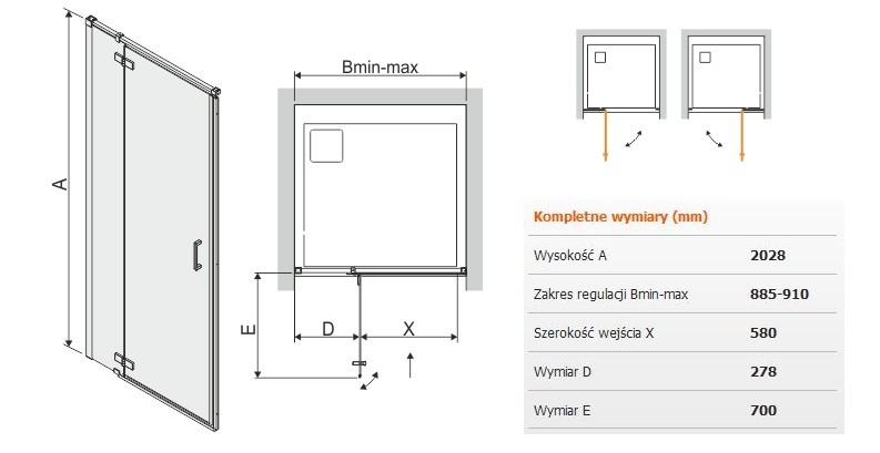 Nowe rozwiązanie do zabudowy wnęki prysznicowej do drzwi skrzydłowe DJ2/FREE II o wysokości 200cm.