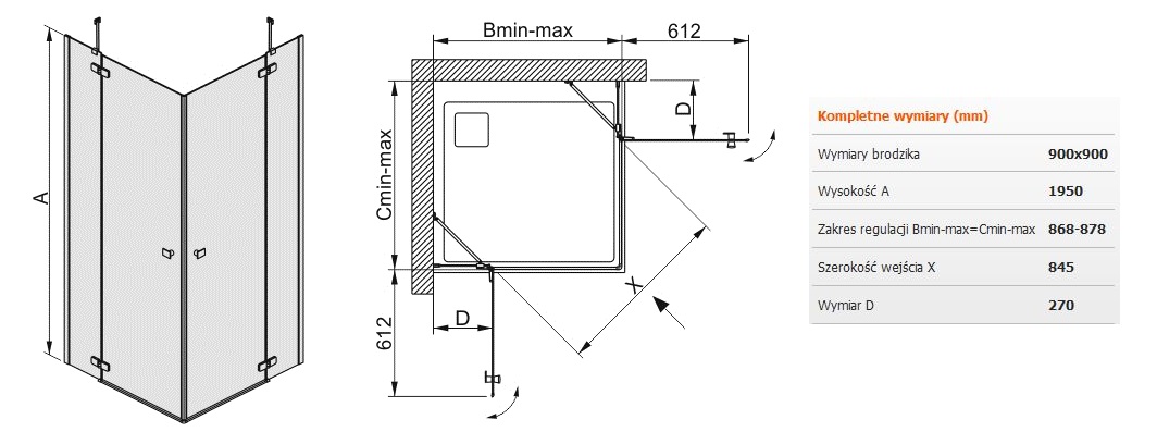 Szczelność zapewniają transparentne uszczelki na ściankach i drzwiach, chromowana listwa mocowana na brodziku oraz uszczelka magnetyczna. Wygodne otwieranie drzwi umożliwiają eleganckie chromowane uchwyty.