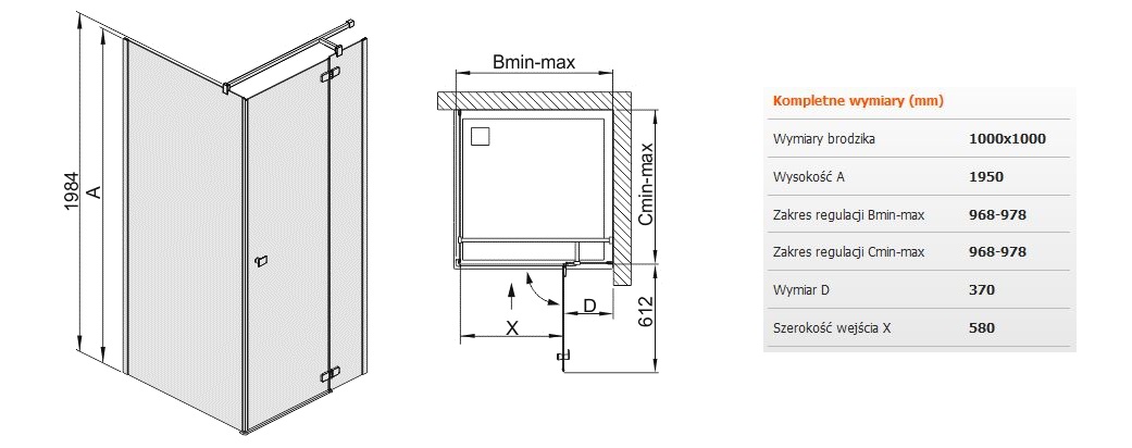 Kabiny prysznicowe narożne kwadratowe i prostokątne KNDJ2/FREE z drzwiami skrzydłowymi i ścianką stałą z wypełnieniem z bezpiecznego szkła hartowanego.