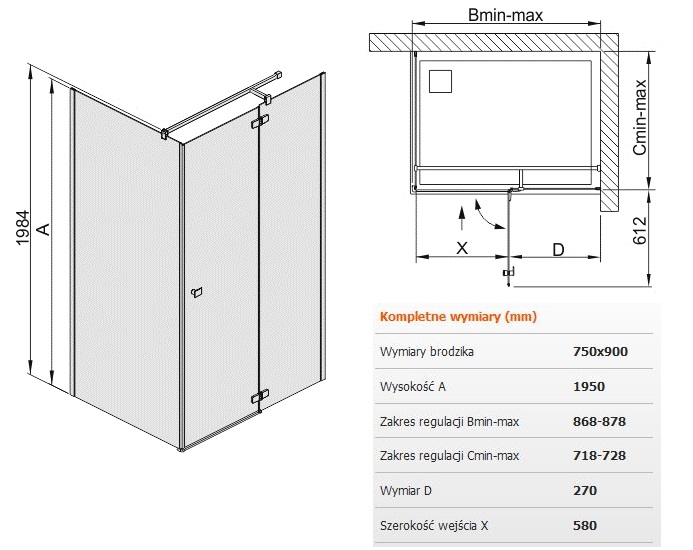 Kabiny prysznicowe narożne kwadratowe i prostokątne KNDJ2/FREE z drzwiami skrzydłowymi i ścianką stałą z wypełnieniem z bezpiecznego szkła hartowanego.