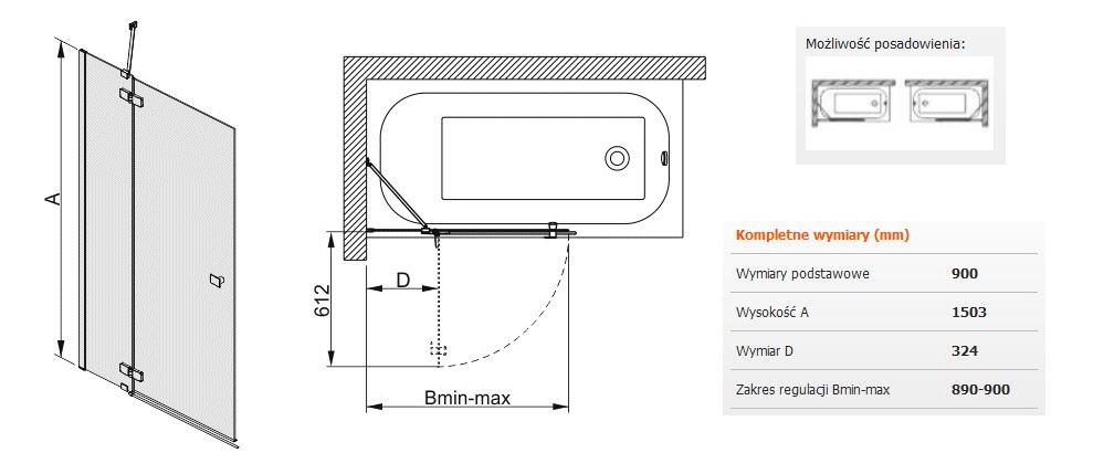 Szczelność zapewnia transparentna uszczelka na ściance i drzwiach oraz chromowana listwa mocowana na wannie.
