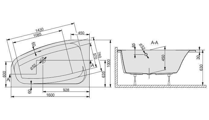 Sanplast Wanna WAL/FREE 100x160+STW biew