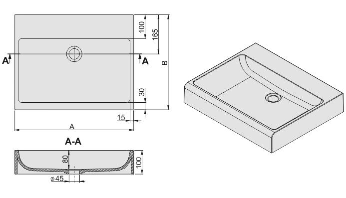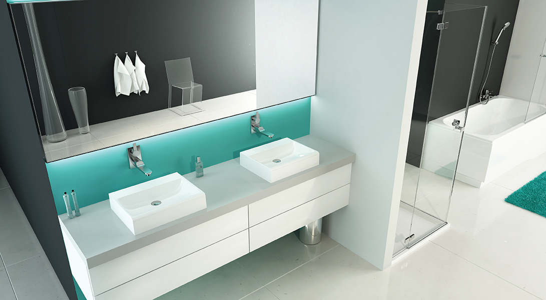 Prostokątna umywalka nablatowa Free Mineral jest wykonana z odlewu mineralnego.