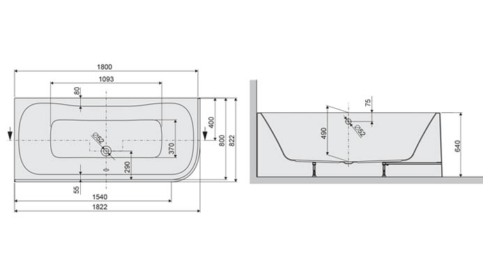 Wanna asymetryczna z lekko zaokrąglonym jednym narożnikiem łączy swoim designem prostotę wanny prostokątnej z delikatnością wanny asymetrycznej.