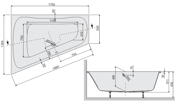 Wanna trapezowa LUXO pozwala na kąpiel dwóm osobom dzięki dużemu i wygodnemu oparciu z jednej strony. Takie możliwości mają tylko wanny trapezowe.