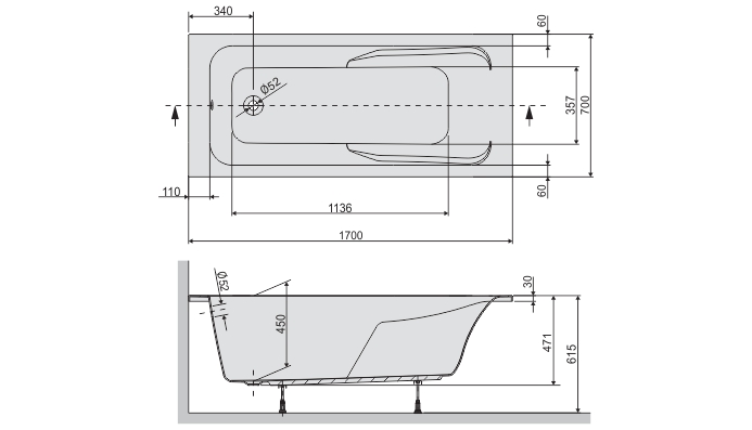 Wanny Modesta wyróżniają się specjalnie wyprofilowanymi przetłoczeniami pod łokcie. Wszystko dla jeszcze większego komfortu kąpieli. Szeroki rant przy przelewie sprawdzi się jako praktyczna półka. Komfortu kąpieli dopełni głębokość 45 cm.