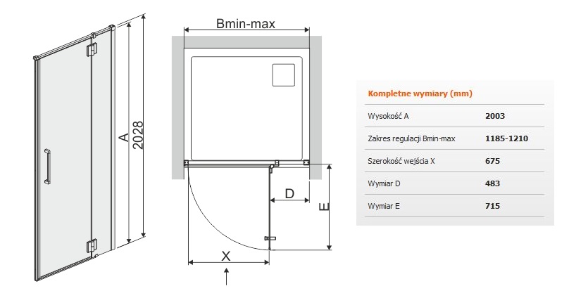 Jednym z sposobów zabudowy wnęki prysznicowej mogą być drzwi skrzydłowe DJ2L(P)/SPACE, występujące w wersji lewej lub prawej.