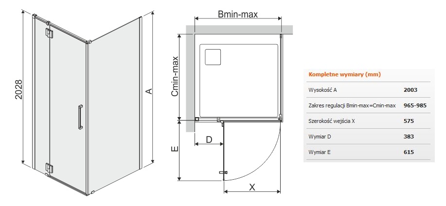 Kabiny prysznicowe narożne kwadratowe lub prostokątne KNDJ2L(P)/SPACE, występujące w wersji lewej lub prawej.