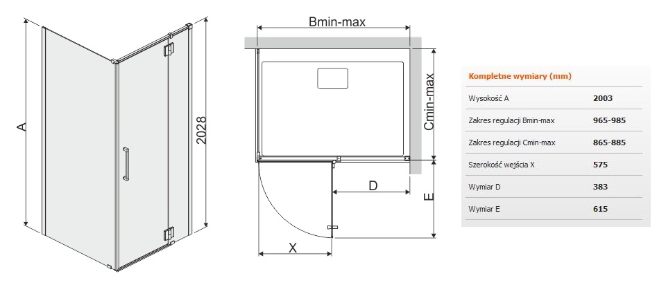Kabiny prysznicowe narożne kwadratowe lub prostokątne KNDJ2L(P)/SPACE, występujące w wersji lewej lub prawej.