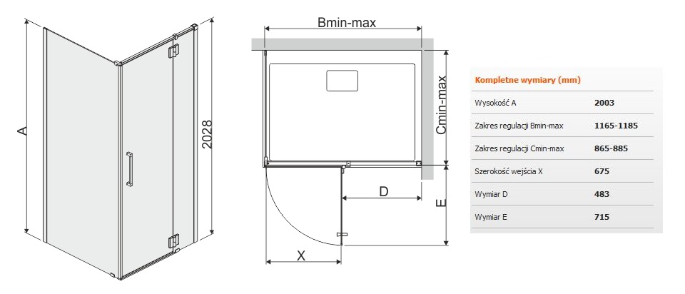 Kabiny prysznicowe narożne kwadratowe lub prostokątne KNDJ2L(P)/SPACE, występujące w wersji lewej lub prawej.
