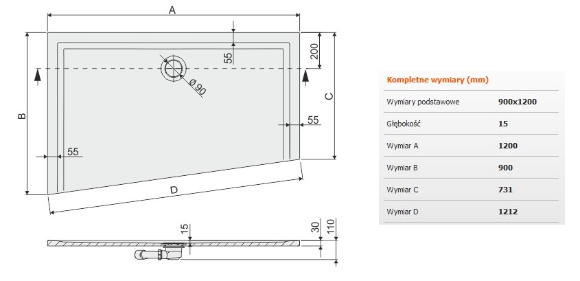 Brodzik BTL-M/SPACE 90x120x1,5 biew